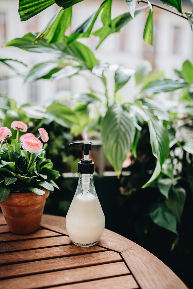 4. Danach nimmst du die Seifenpumpe und steckst sie in den Flaschenhals.