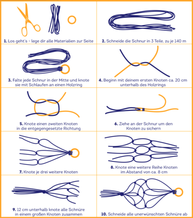 2. Jetzt beginnen wir mit dem Makramee: In dieser Anleitung kommst du in 10 Schritten zu deinem Vasen-Makramee!
